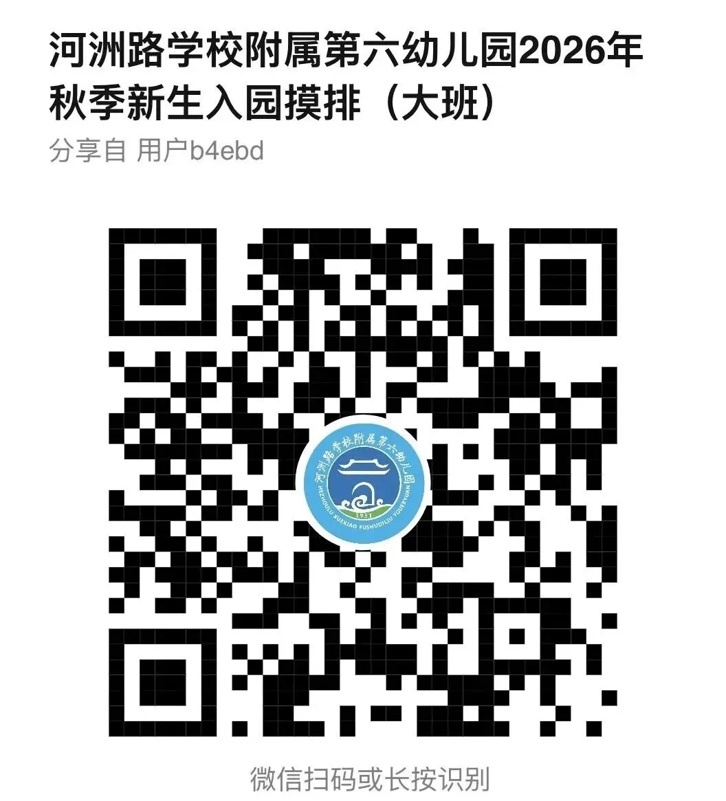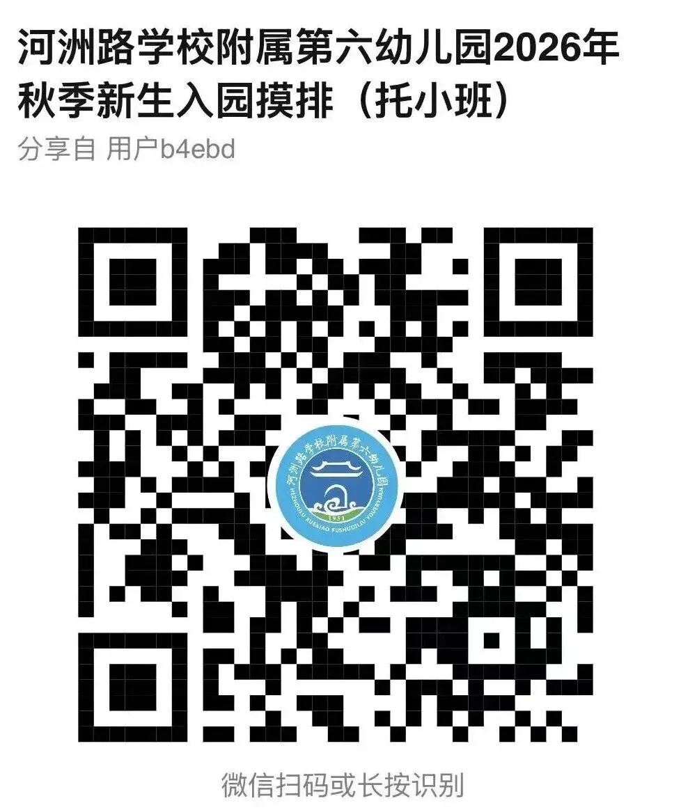 关注南昌县河洲路学校附属第六幼儿园微信公众号扫描“2026年秋季新生入园摸排二维码”进行报名。