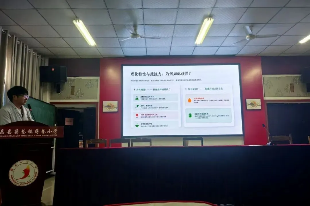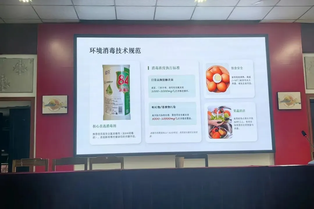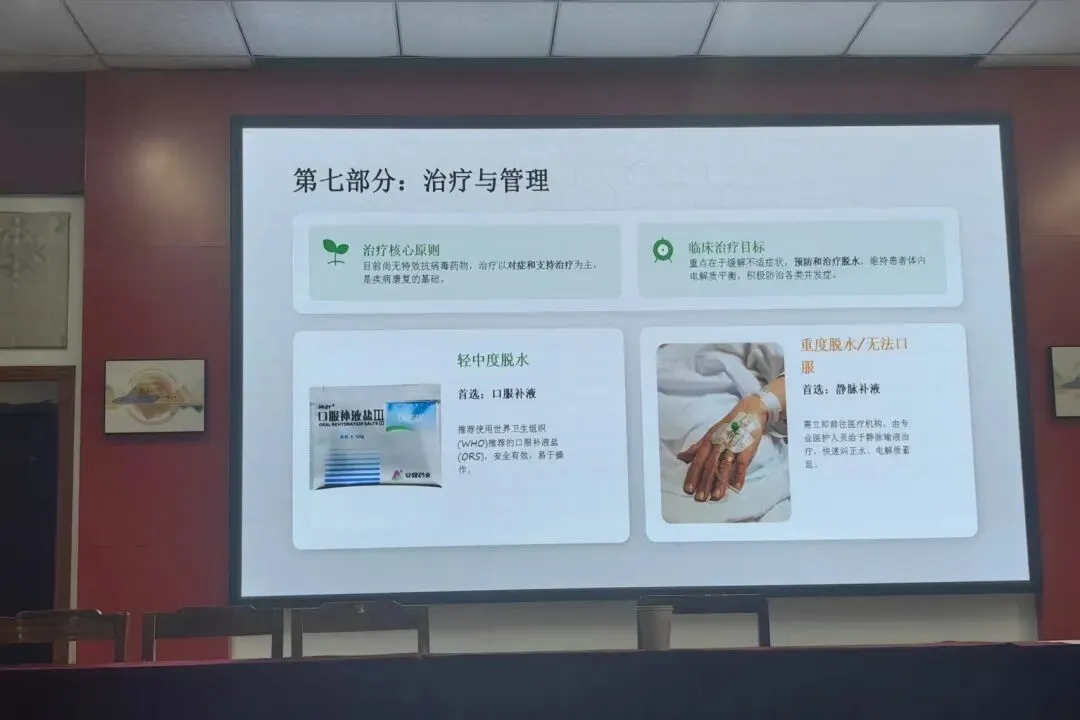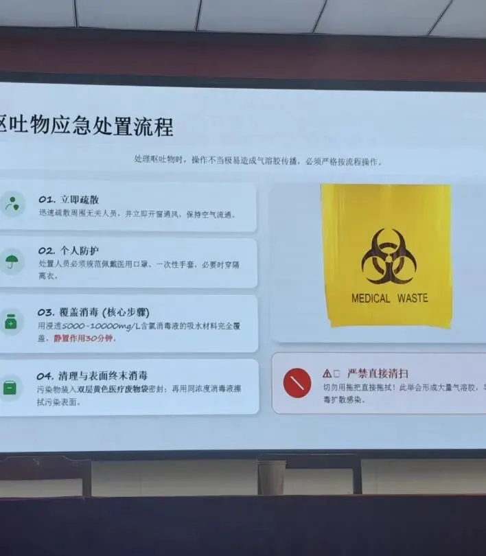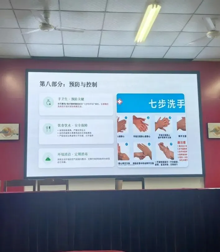 培训中,卫生院医生围绕《2025-2026版诺如病毒胃肠炎诊疗指南》,从病毒特性、传播途径、易感人群、治疗管理、预防控制等方面,用通俗易懂的语言进行了全面讲解,重点科普了诺如病毒的灭活方法、呕吐物应急处置流程、七步洗手法等实用知识,帮助师生、家长掌握科学防控技能。