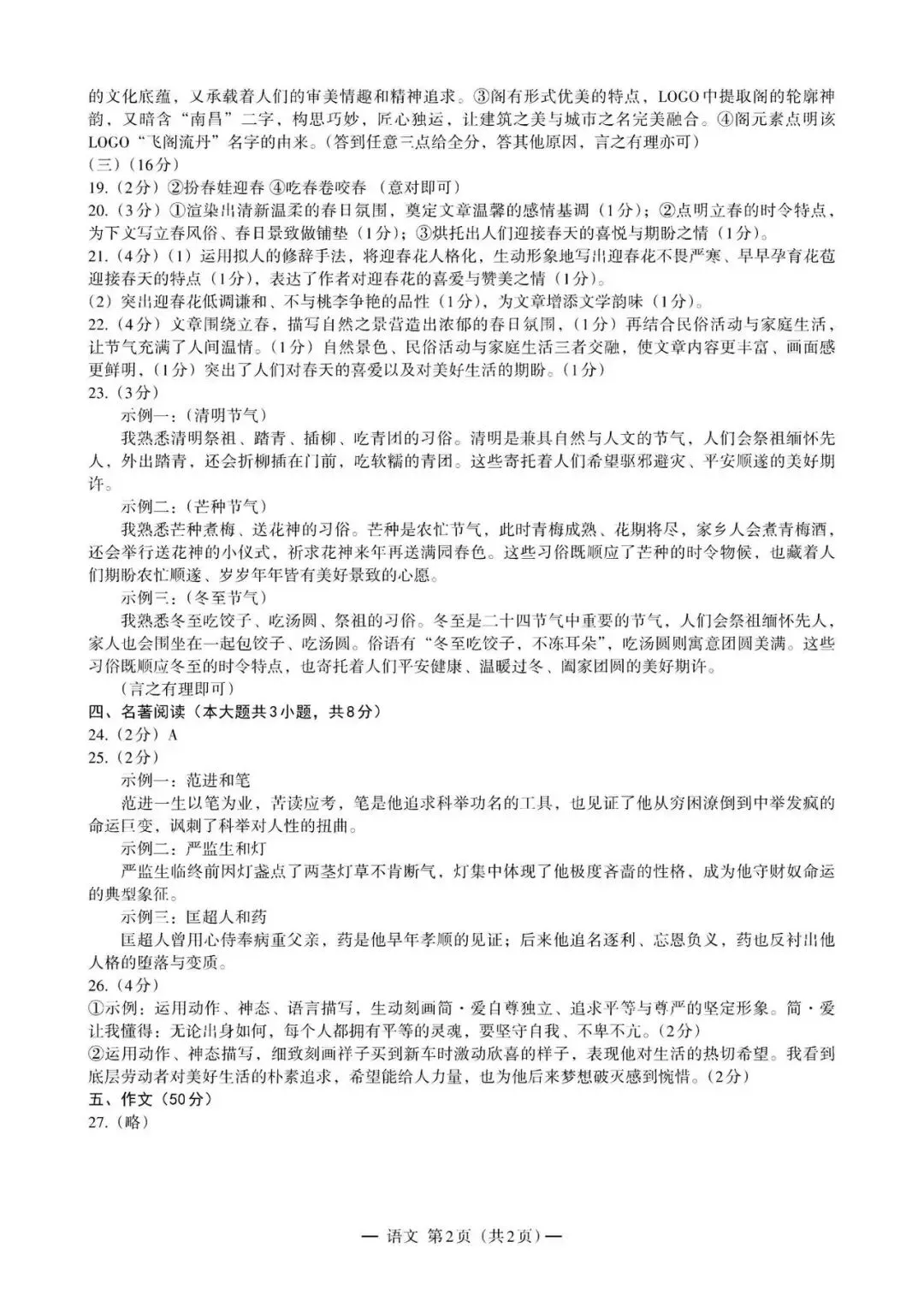 语文参考答案
