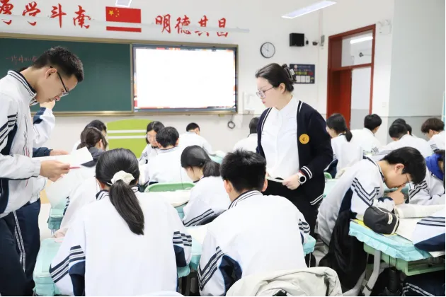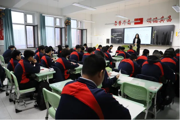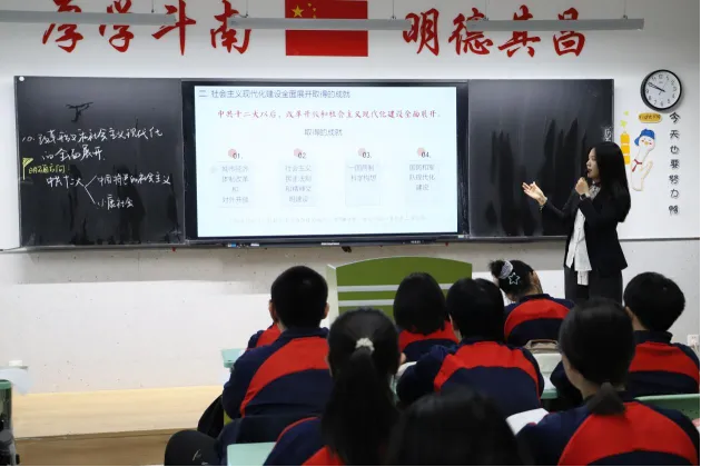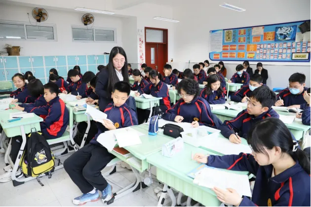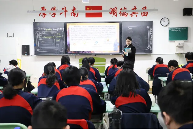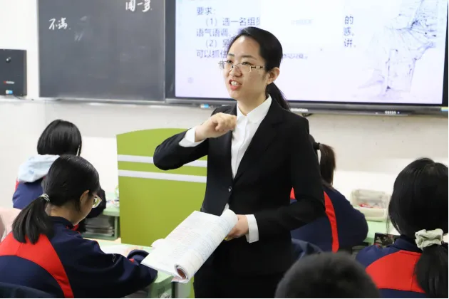 语文课堂上,八年级张晓雨老师和九年级尚丹阳老师或引导学生涵泳经典、品读文本,或搭建表达支架、培育核心素养,将人文浸润与语言训练有机结合,尽显语文课堂的厚重与灵动;