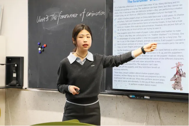 英语课堂上,八年级张桐硕老师和鞠孟桥老师秉持英语学习活动观,围绕阅读课设计趣味任务,引导学生在情境中感知语言、运用语言,实现“教-学-评”一体化;