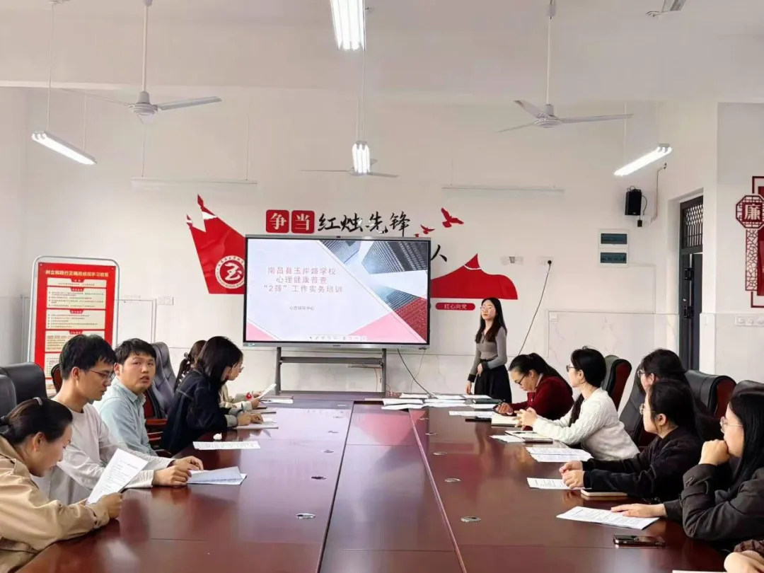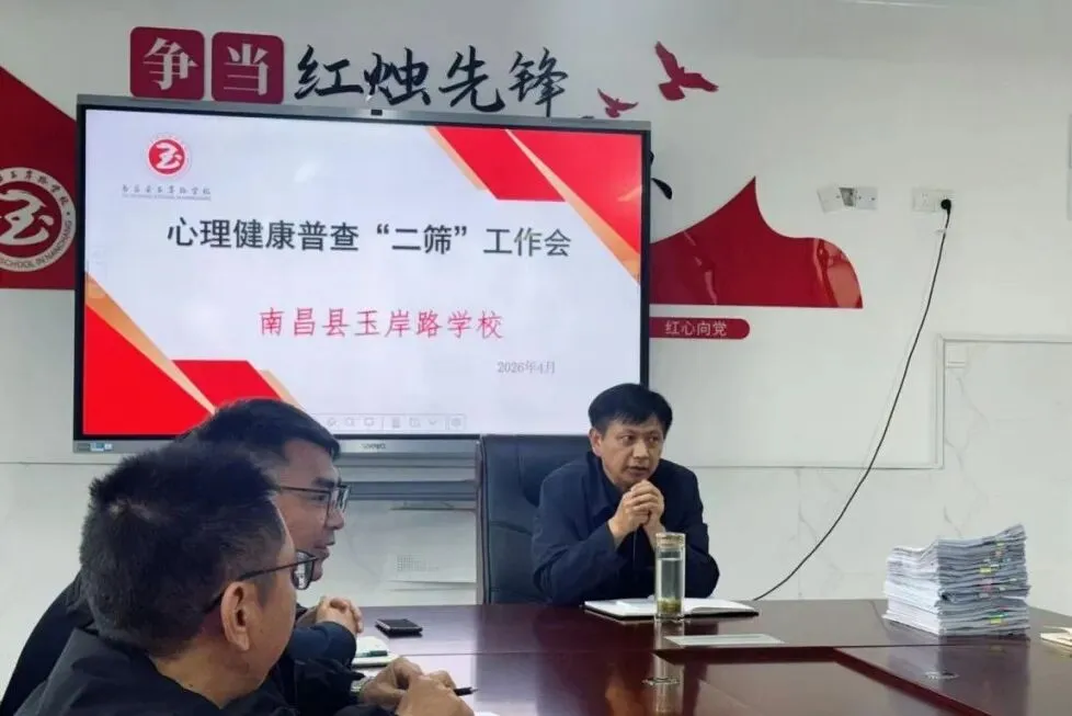 为全面贯彻落实学生心理健康教育工作要求,进一步提升校园心理健康服务水平。南昌县玉岸路学校以“精准筛查、科学干预”为目标,召开校级领导工作会及初中班主任与心理教师实务培训会,对心理健康“二次筛查”工作进行全面部署与专业指导,全力守护学生身心健康成长。