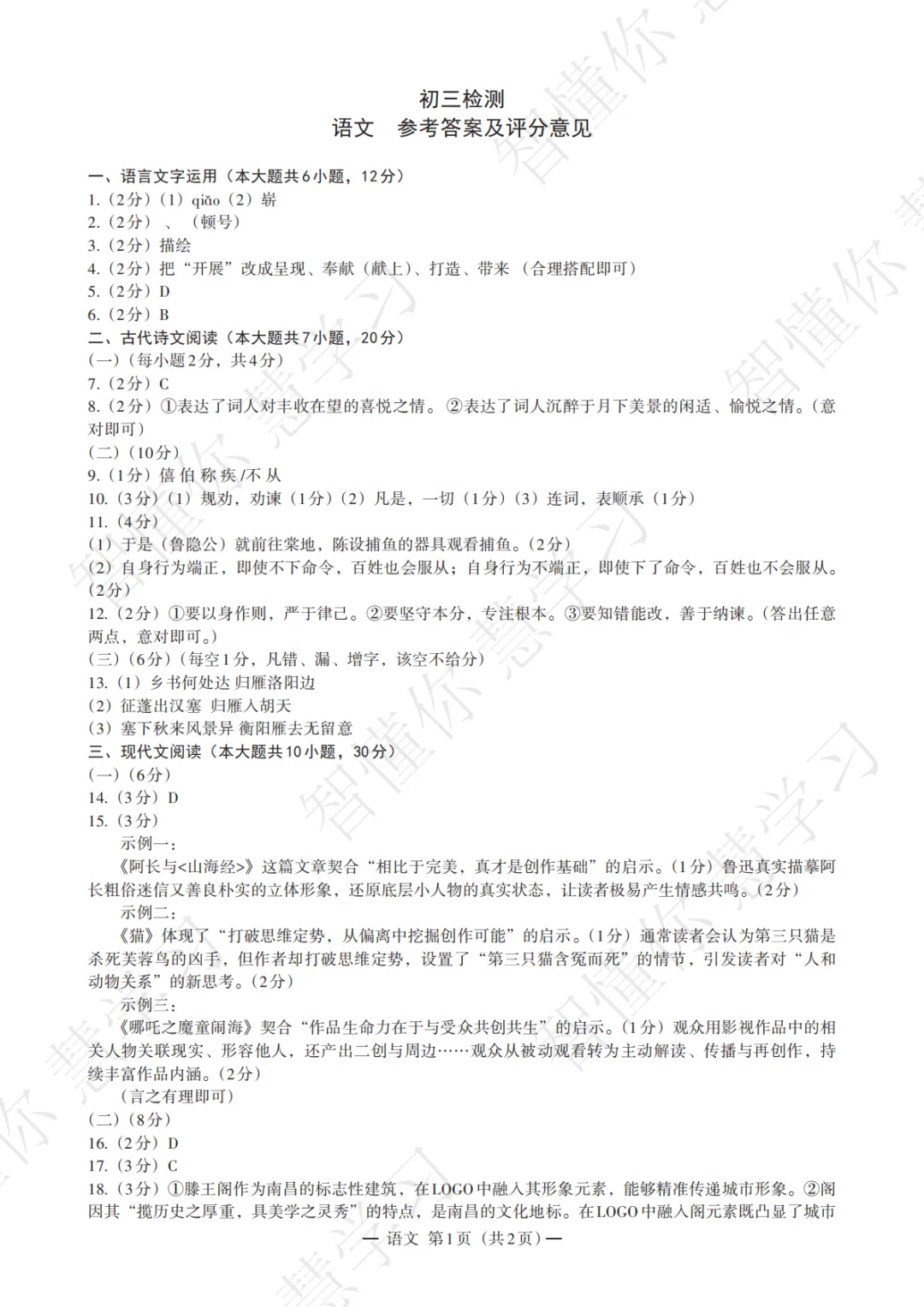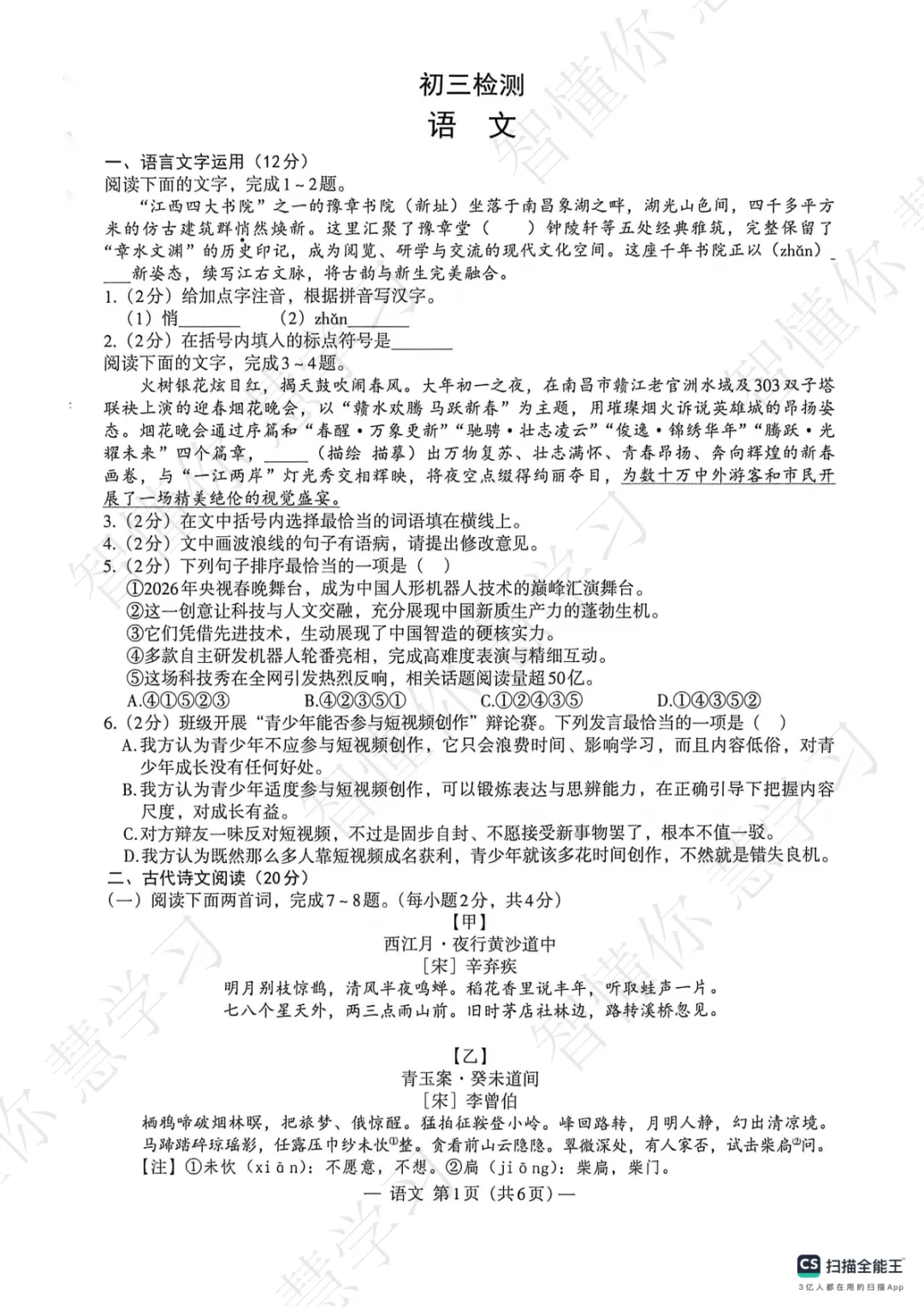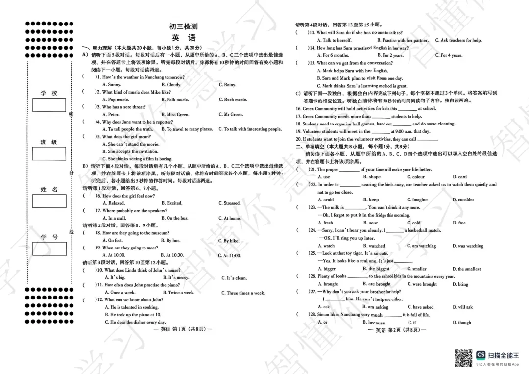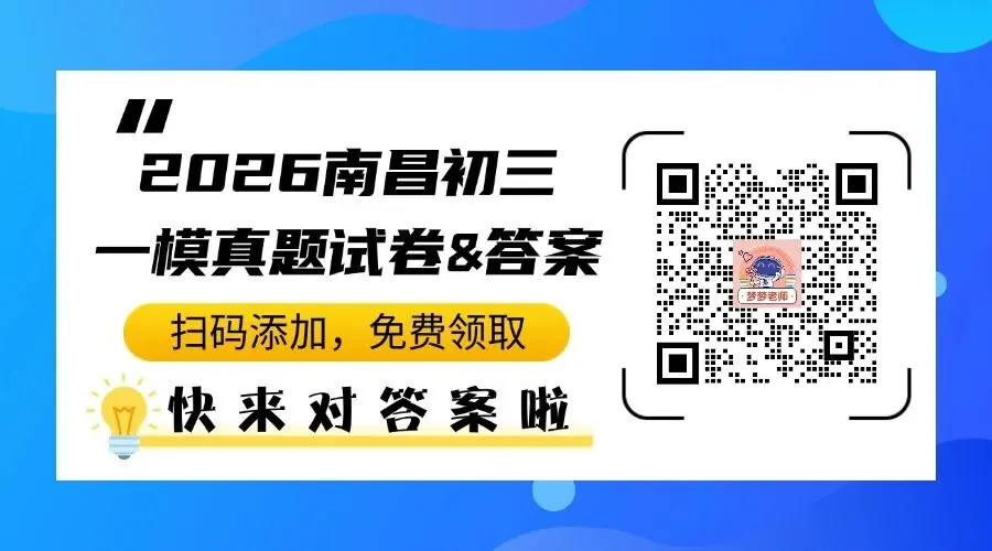 最新!2026南昌市初三一模试卷&答案新鲜出炉!