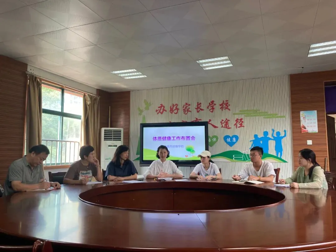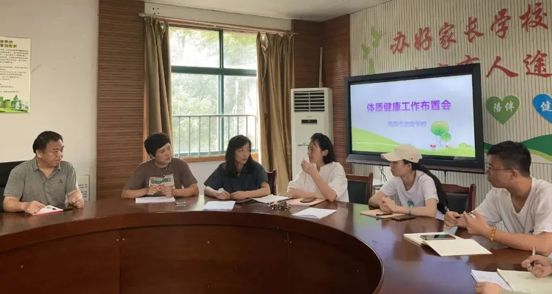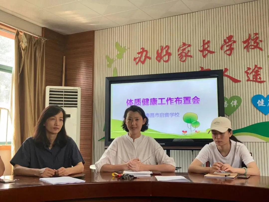 为了进一步落实学校“五项管理”工作,推进学校体育教学工作,加强学生体质锻炼,全面增进学生的体质健康水平,9月9日上午,南昌市启音学校新学期体质健康工作布置会在二楼会议室召开,副校长邓媛媛,教务处主任章文勇、政教处主任曾文萍以及全体体育教师参加会议。