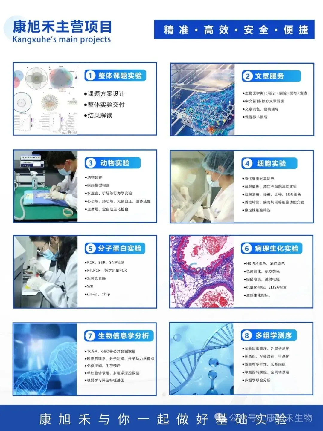 康旭禾生物提供包括动物实验、细胞实验、分子实验、病理实验、流式检测实验及论文翻译、润色、投稿辅助等相关的各项服务。