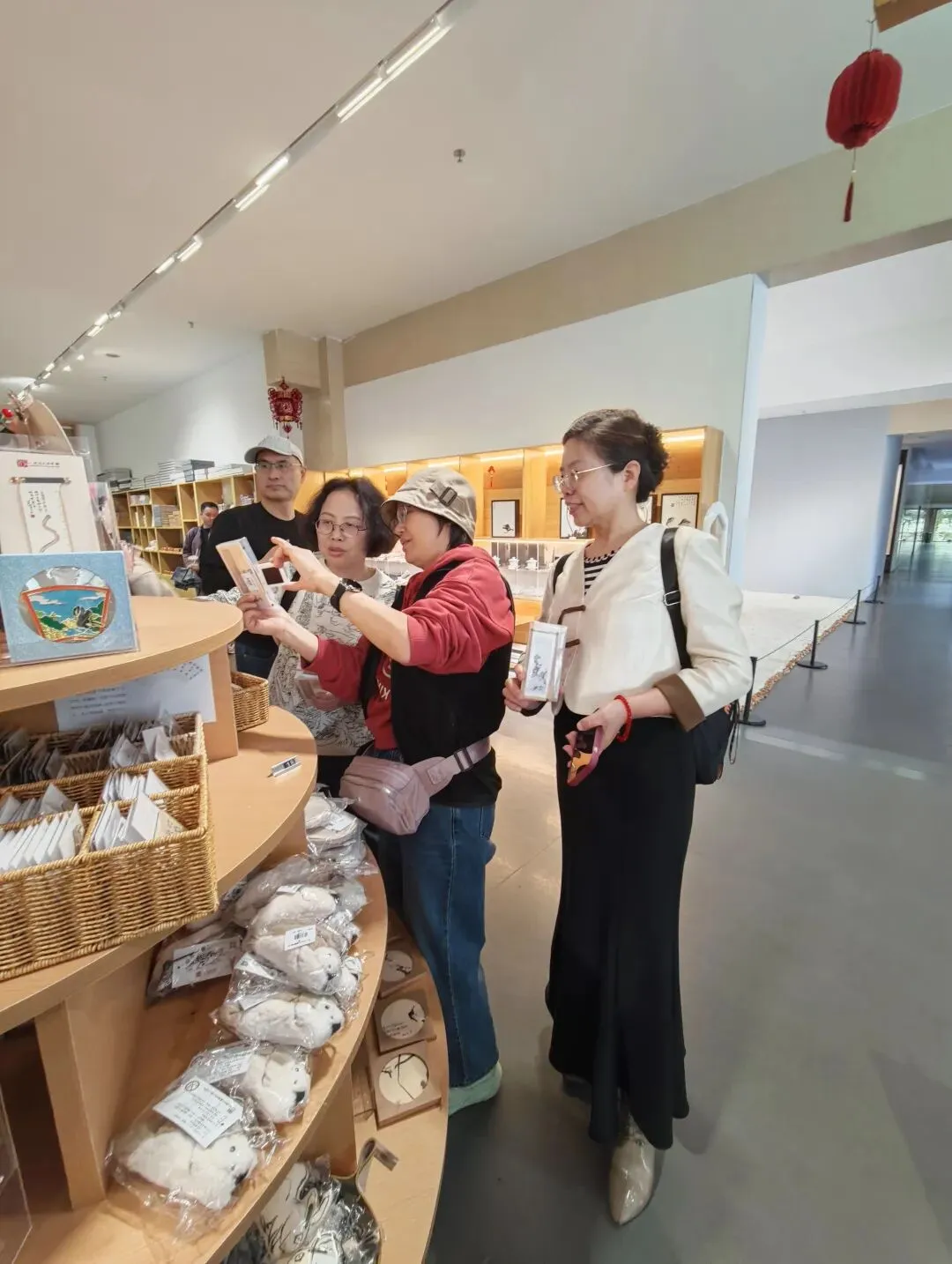 从二楼真迹馆下到一楼的文创商店,但见以八大山人画作为题材的画册、画框、镇尺、T恤衫、瓷器、冰箱贴、抱枕等等品种繁多,琳琅满目,游客们兴致盎然地从中挑选着,阿锋她们也加入其中。八大山人精妙的传世画作不再仅仅是挂在墙壁上高冷的艺术品,而是转化为走进千家万户的百姓寻常用品。
