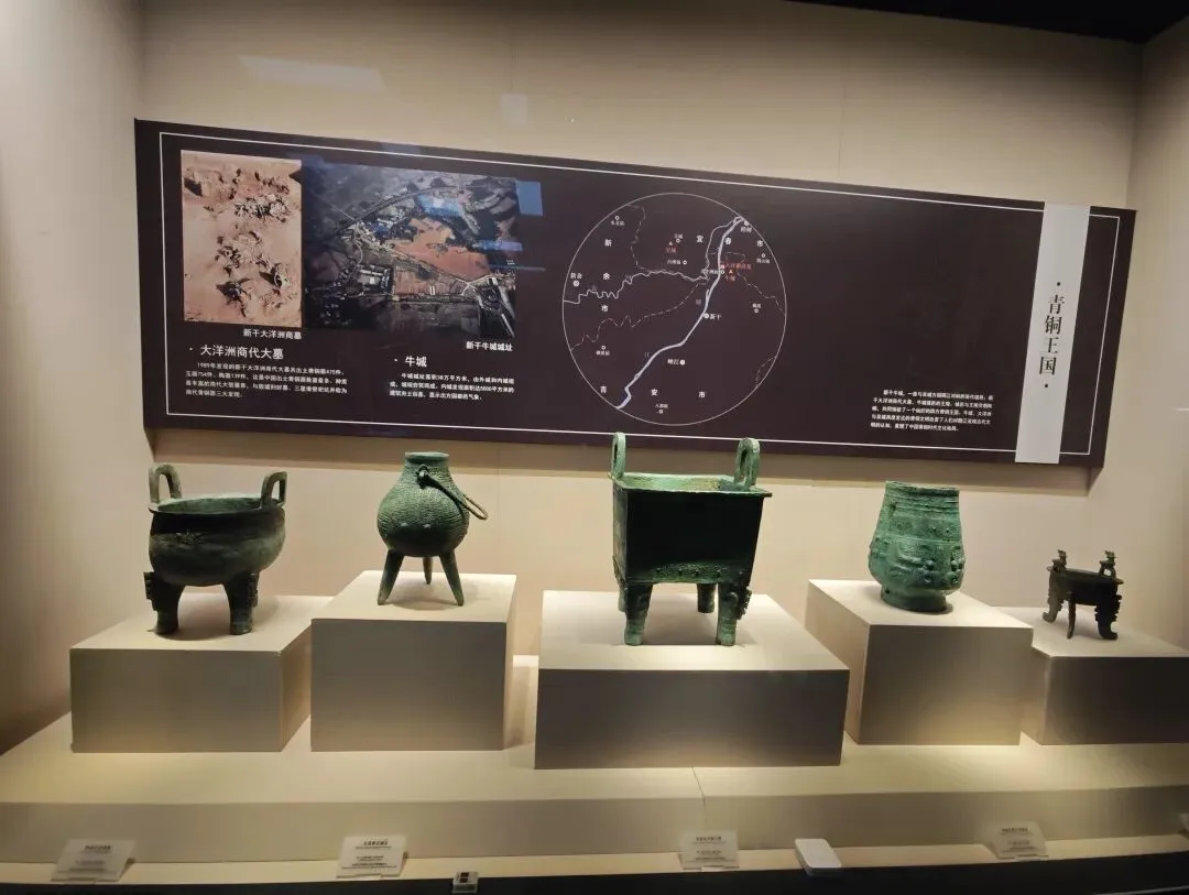 走进“虎踞江南——新干大墓与青铜王国”展厅,真令人大开眼界。1989年新干大洋洲商代大墓共出土青铜器475件,为中国青铜器数量最多,种类最丰富的商代大型墓葬,与殷墟妇好墓、三星堆祭祀坑并称为商代青铜器三大发现。