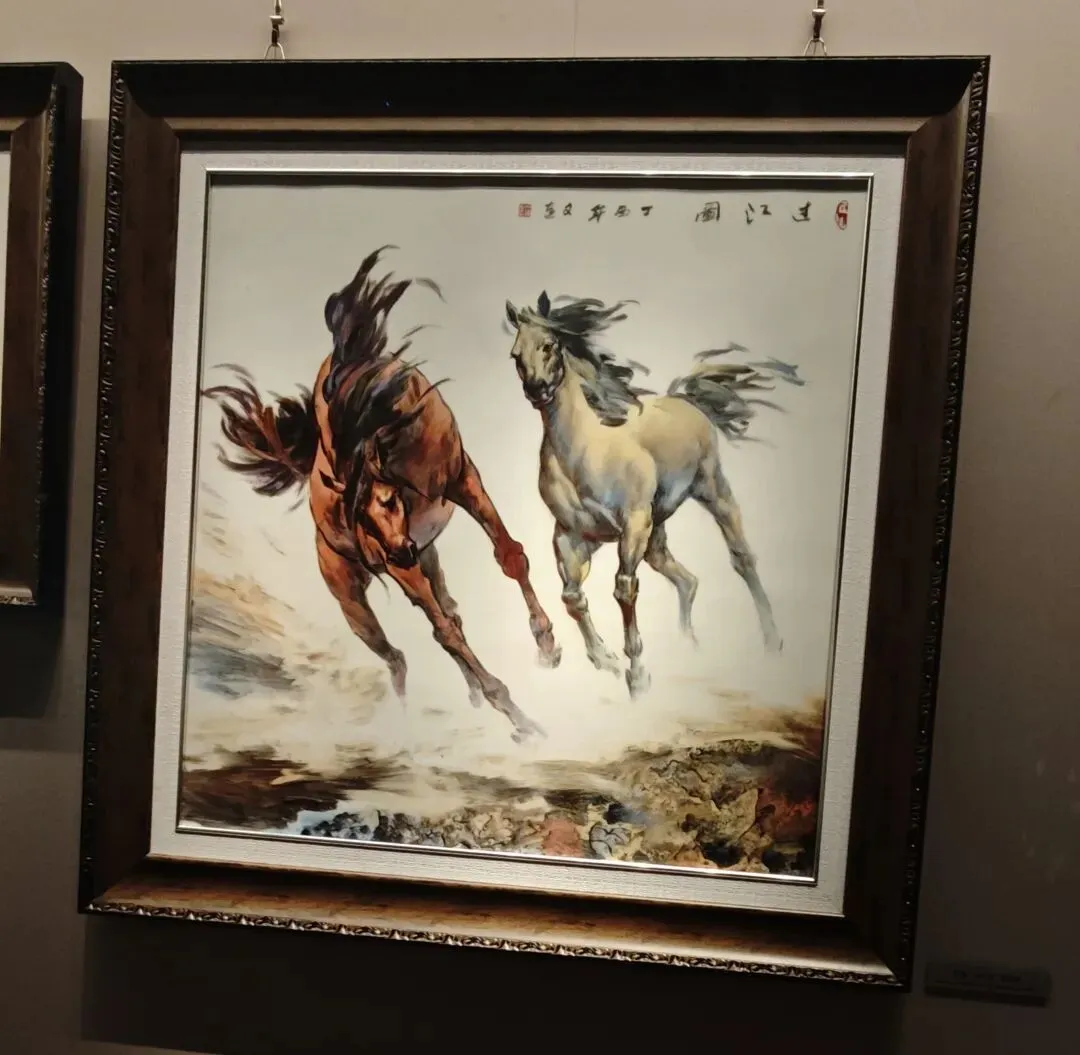 景德镇陶瓷大学教授郭文连老师以马为题材的系列陶瓷作品也颇令人震撼,随着俊马奔腾而来,浪花四溅,洋溢着生命的野性,很有张力。