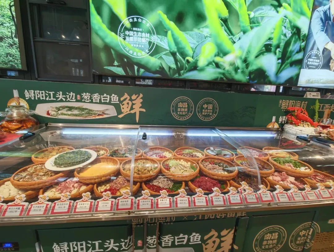 “鲟阳江头边”不禁令人想起白居易《琵琶行》中“浔阳江头夜送客”的诗行,浔阳属于江西鄱阳湖一带,鲟鱼又是鄱阳湖的优质水产,后来通过度娘得知“鲟阳渔村”正是以鄱阳湖鱼鲜为特色,主打地道的江西鱼俗饮食文化 ,颇受好评,在南昌有好几家分店,我们来的下罗这家恰是旗舰店。