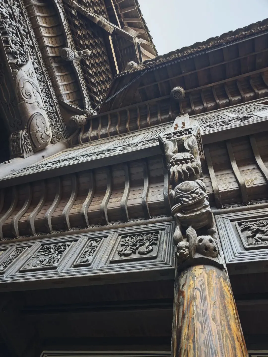 进门后更惊叹于雕梁画栋精美之至,但见花卉舒展,飞鸟灵动,舞狮欲扑……处处洋溢着蓬勃的生命力,不禁令人深深折服于其高超的雕刻艺术。