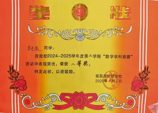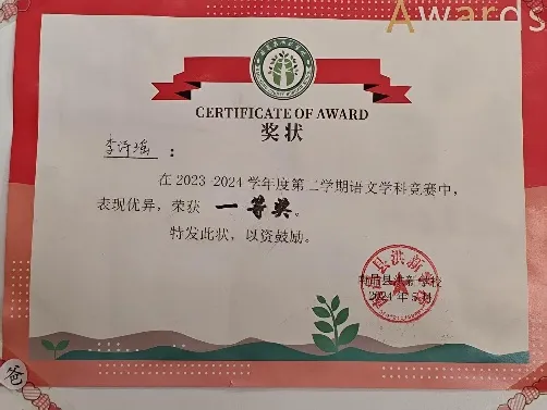 在日常学习中,李诗瑶同学学习态度端正,课堂专注、作业规范,善于思考、敢于提问,能够主动整理错题、总结方法,学习习惯良好。在学科竞赛与活动中,她也表现亮眼:在语文学科竞赛中获得优异成绩,在数学学科竞赛中同样取得佳绩,多项荣誉见证了她扎实的学科基础与持续进步。