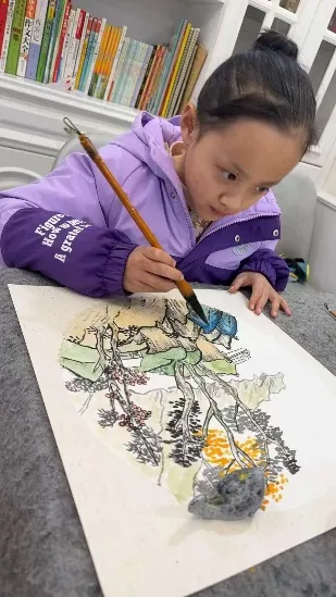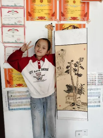 李诗瑶同学从小热爱中华传统艺术,在书法和国画的学习中持之以恒、精益求精。练习书法时,她一笔一画静心书写,字体工整有力、结构匀称,在笔墨起落间磨炼耐心与专注力。研习国画时,她细心观察、用心构图,熟练运用勾线、设色等技法,笔下作品清新雅致、意境灵动,尽显小小少年的审美才情与艺术修养。