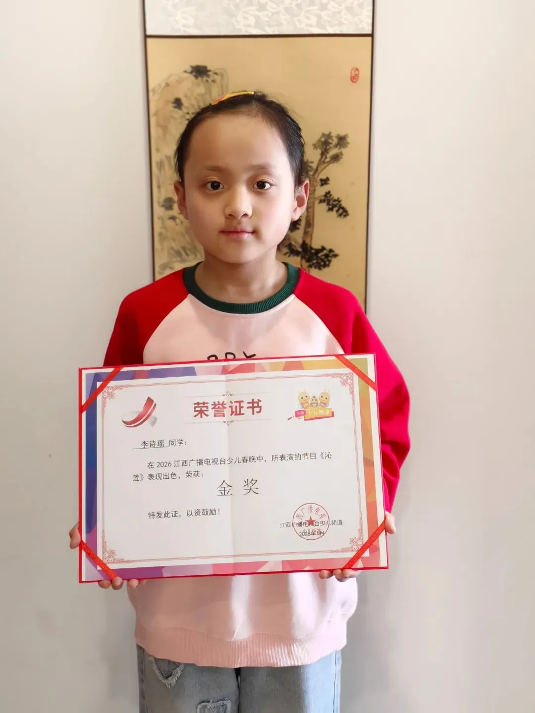 韵润童心,少年绽芳华。愿李诗瑶同学带着这份热爱与坚持,向阳生长、逐光前行,继续以昂扬向上的姿态,成长为有理想、有修养、有担当的新时代好少年!