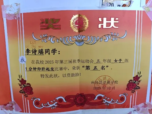 健康的身体是成长的底气。李诗瑶同学积极参加各类体育活动,坚持日常锻炼,在学校运动会上勇于拼搏、活力满满,用行动践行 “健康第一” 的理念。学习之余坚持运动,让她劳逸结合、精力充沛,在奔跑与锻炼中收获快乐,也培养了坚韧不拔的体育精神。