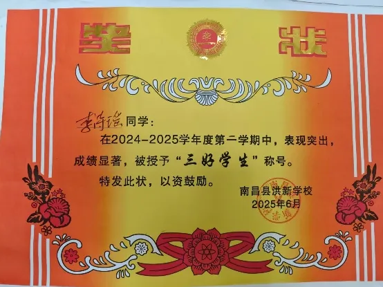 在学校,她尊敬师长、团结同学,遵守纪律、乐于助人,积极参与班级事务和集体活动,先后荣获 “三好学生”“优秀班干部” 等称号,用温柔善良的品格赢得老师和同学们的一致认可。