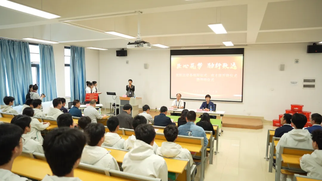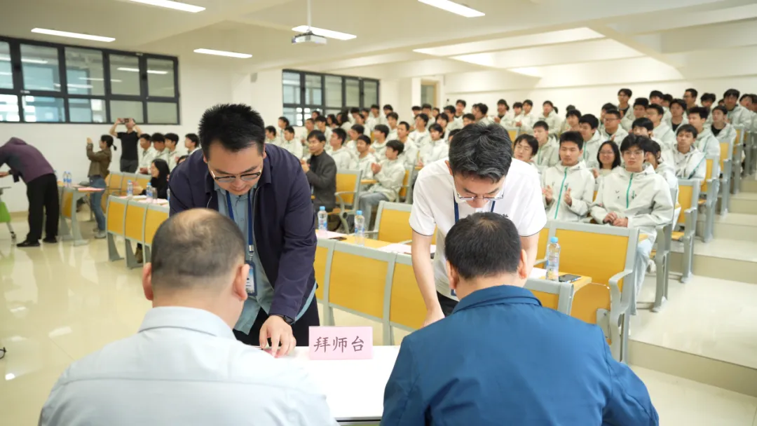 开班仪式上,同学们精神饱满地宣读了入班誓词。拜师环节中,学院青年教师依次向企业工程师呈拜师帖,师傅回赠寄语,双方正式结成师徒,共育“欣才班”。