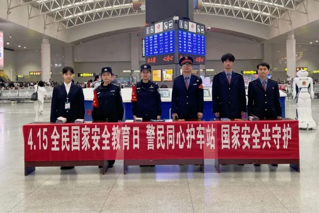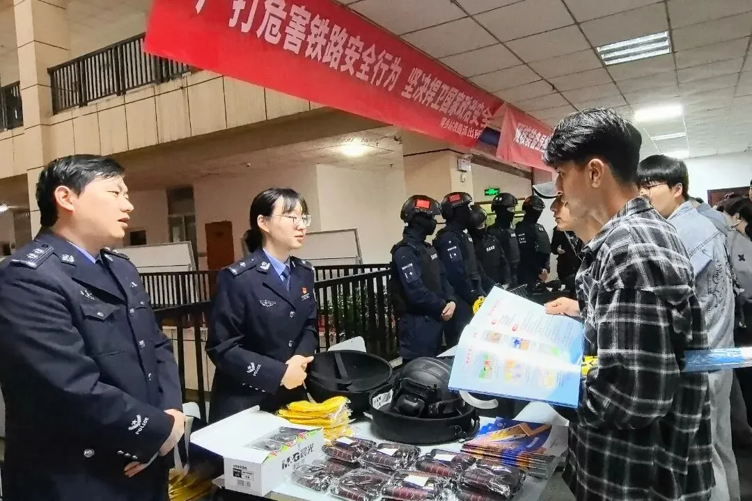 (萍乡站派出所联合萍乡市公安局、萍乡安源分局、萍乡特巡警支队以及萍乡五所高校在江西工业工程职业技术学院开展国家安全教育日宣传活动)