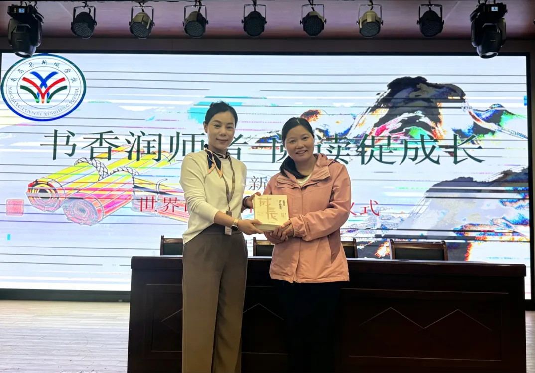 仪式现场,教师代表齐聚一堂,在浓厚的书香氛围中共同见证活动启航。为鼓励教师以书为伴、以读促教,学校领导为教师代表赠书授书,将一本本承载着教育智慧与人文温度的书籍送到老师们手中,传递阅读的力量,也寄托了学校对全体教师深耕阅读、涵养初心的诚挚期许。