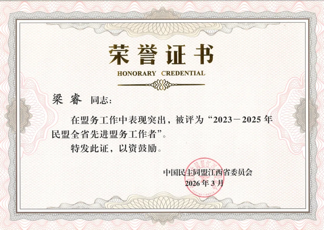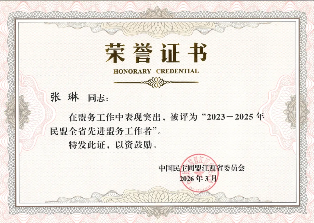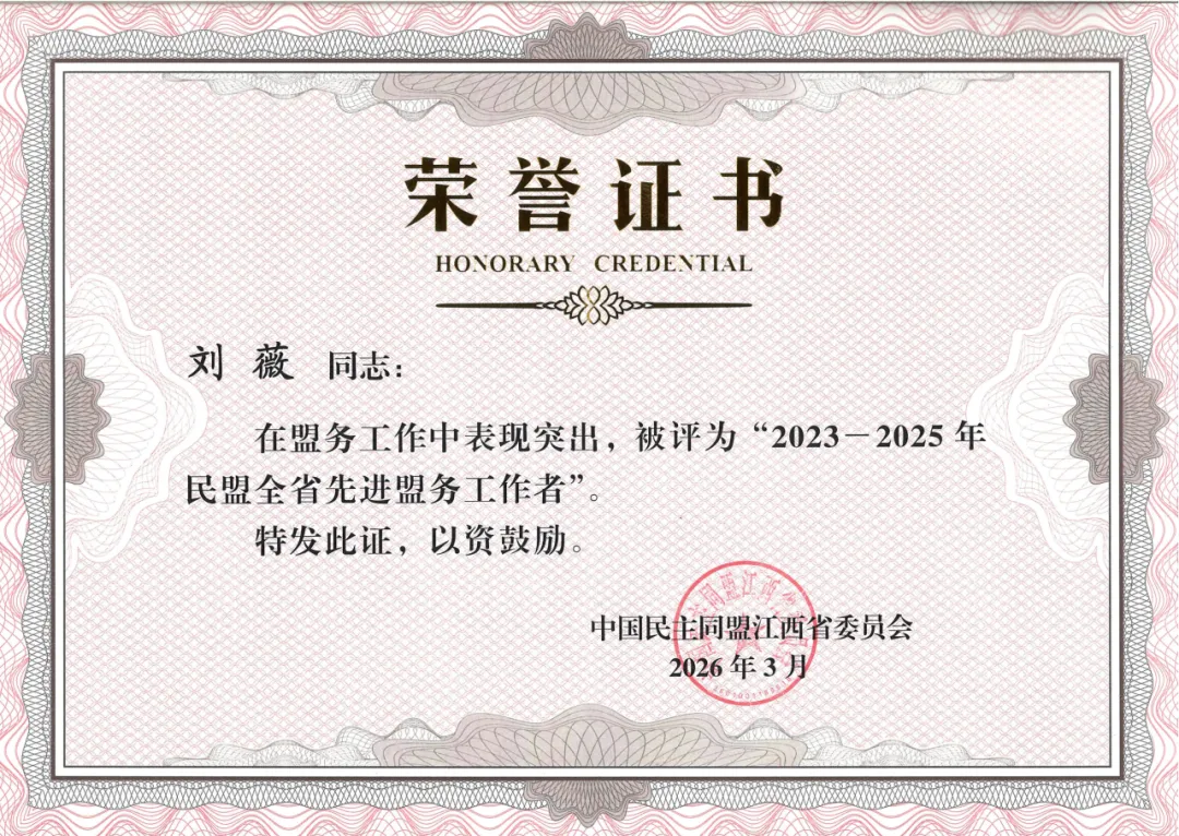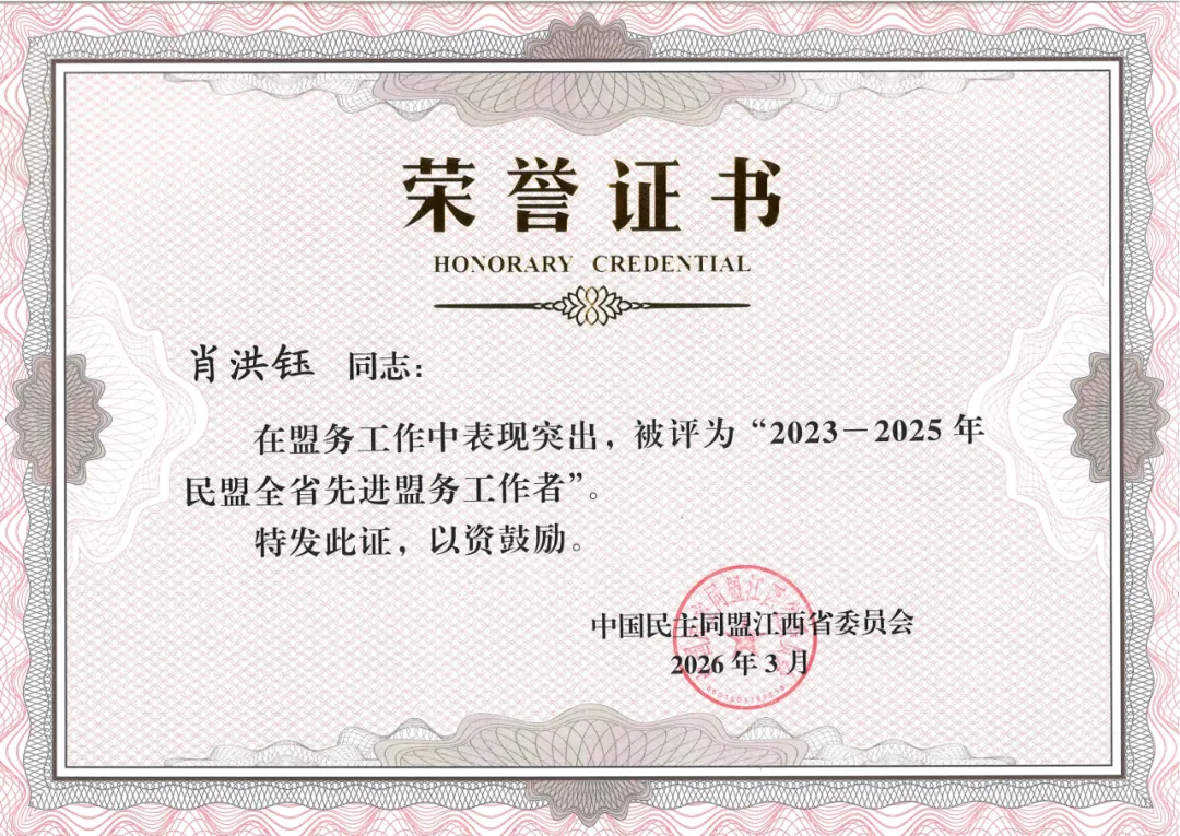 4月10日,民盟江西省第十五届委员会第五次全体会议在南昌召开。会议表彰了2025年度盟务工作先进单位和集体,民盟南昌市委会荣获“2025年度盟务工作先进单位”。同时,全市9名盟员获评“2023-2025年民盟全省先进盟务工作者”。