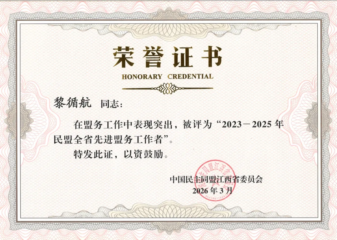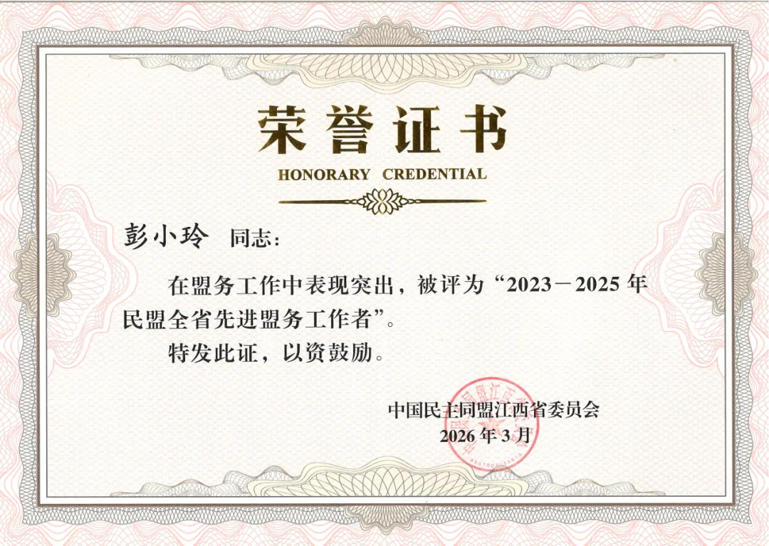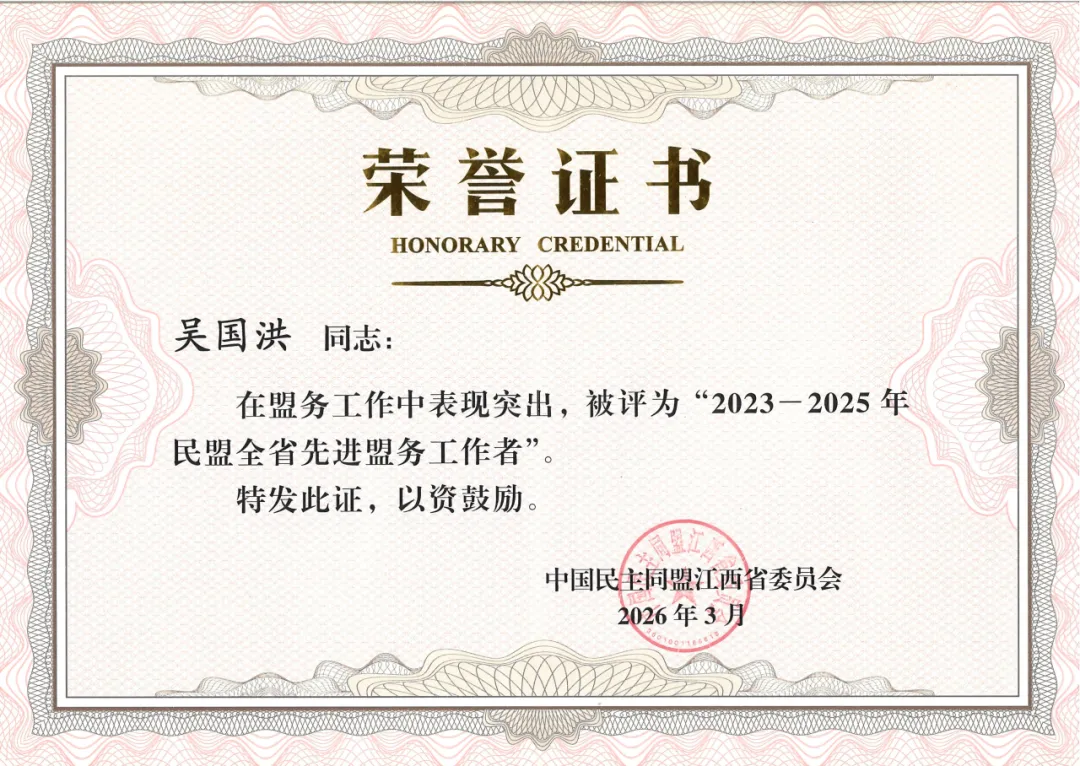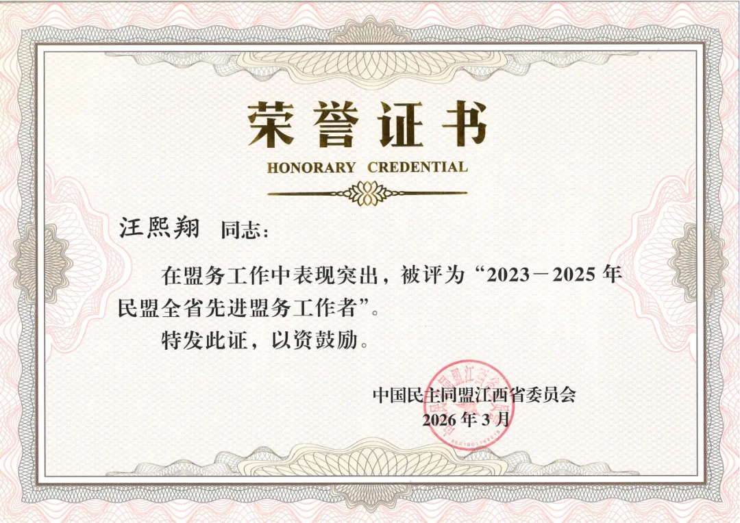 4月10日,民盟江西省第十五届委员会第五次全体会议在南昌召开。会议表彰了2025年度盟务工作先进单位和集体,民盟南昌市委会荣获“2025年度盟务工作先进单位”。同时,全市9名盟员获评“2023-2025年民盟全省先进盟务工作者”。