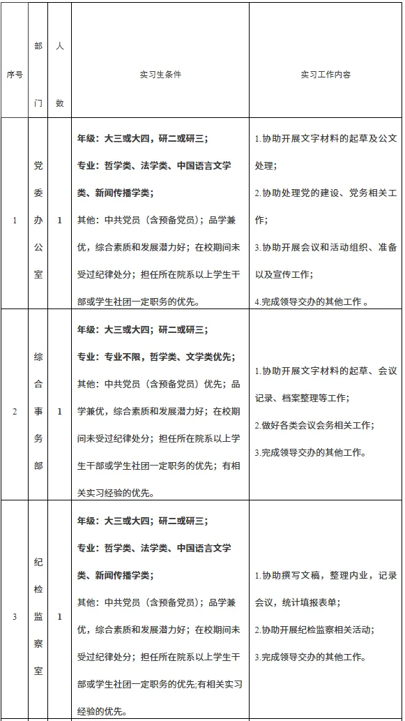 本次公开招募实习生5人。实习岗位及条件见下表: