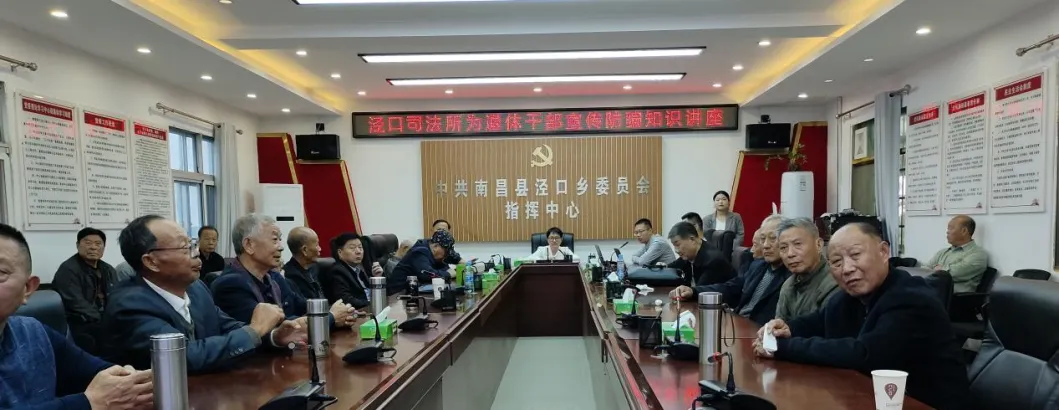 11月15日上午,南昌县泾口司法所邀请江西华邦律师事务所彭江波、聂建胜、余医兰三名职业律师到泾口乡政府四楼会议室,为离退休老同志开展防骗知识讲座。本次讲座旨在提高我乡老同志的防骗意识,营造安全、和谐的生活环境,四十余名退休老干部参加。