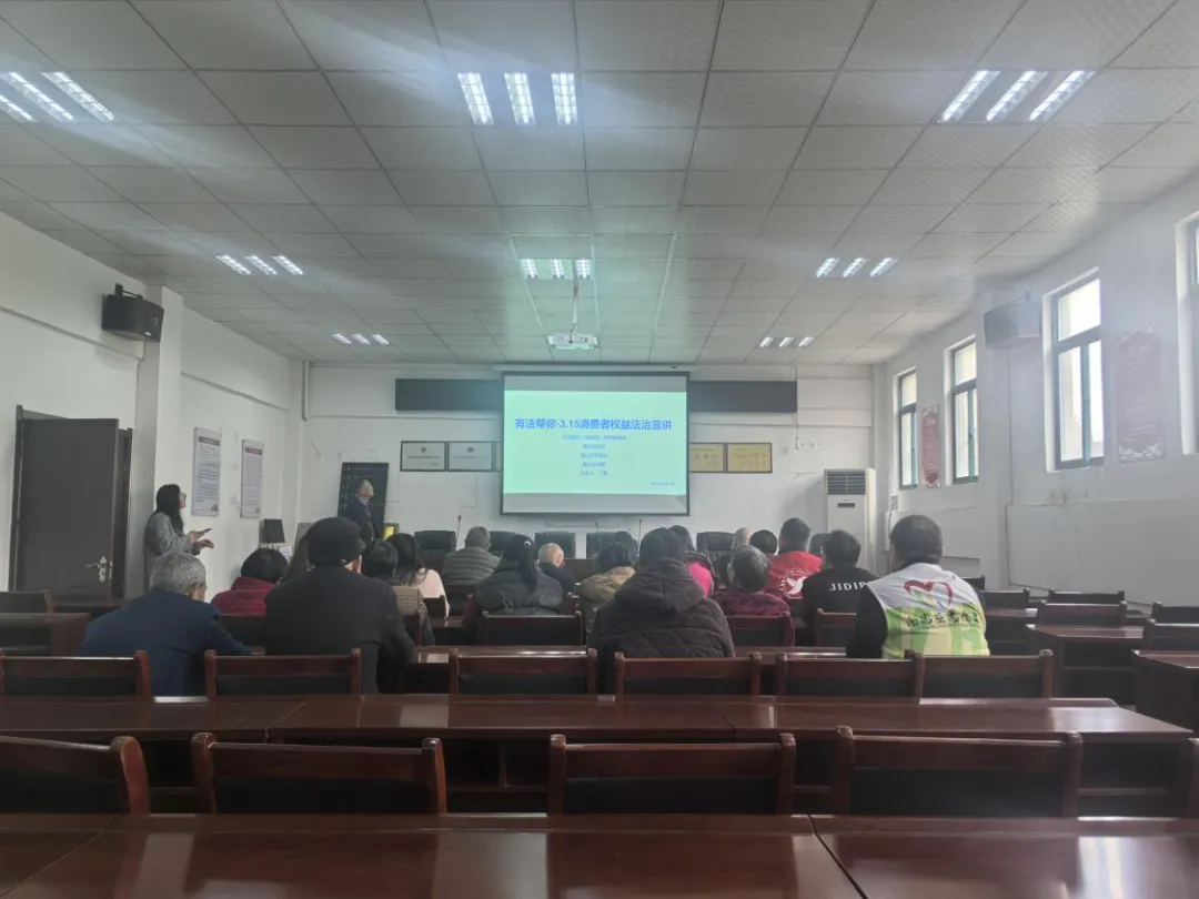 3月11日下午,南昌县富山司法所联合乡平安办、乡妇联在名坊雅苑开展“有法帮你·消费者权益”法治讲座,邀请江西秦风律师事务所丁辉律师现场授课。丁律师以《中华人民共和国消费者权益保护法》为核心,结合“价格欺诈”“霸王条款”等典型案例,指导居民留存消费凭证、拨打12315维权。现场居民感叹:“丁律师讲的售后问题解决步骤,让我们维权有了底气!”