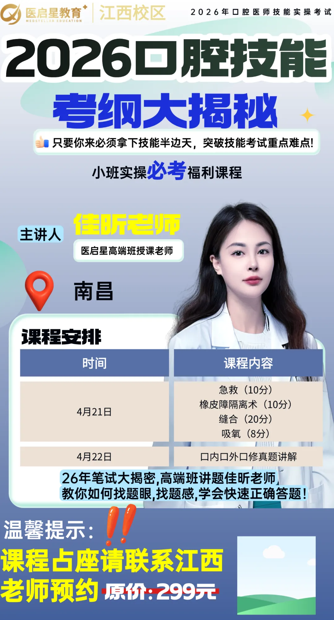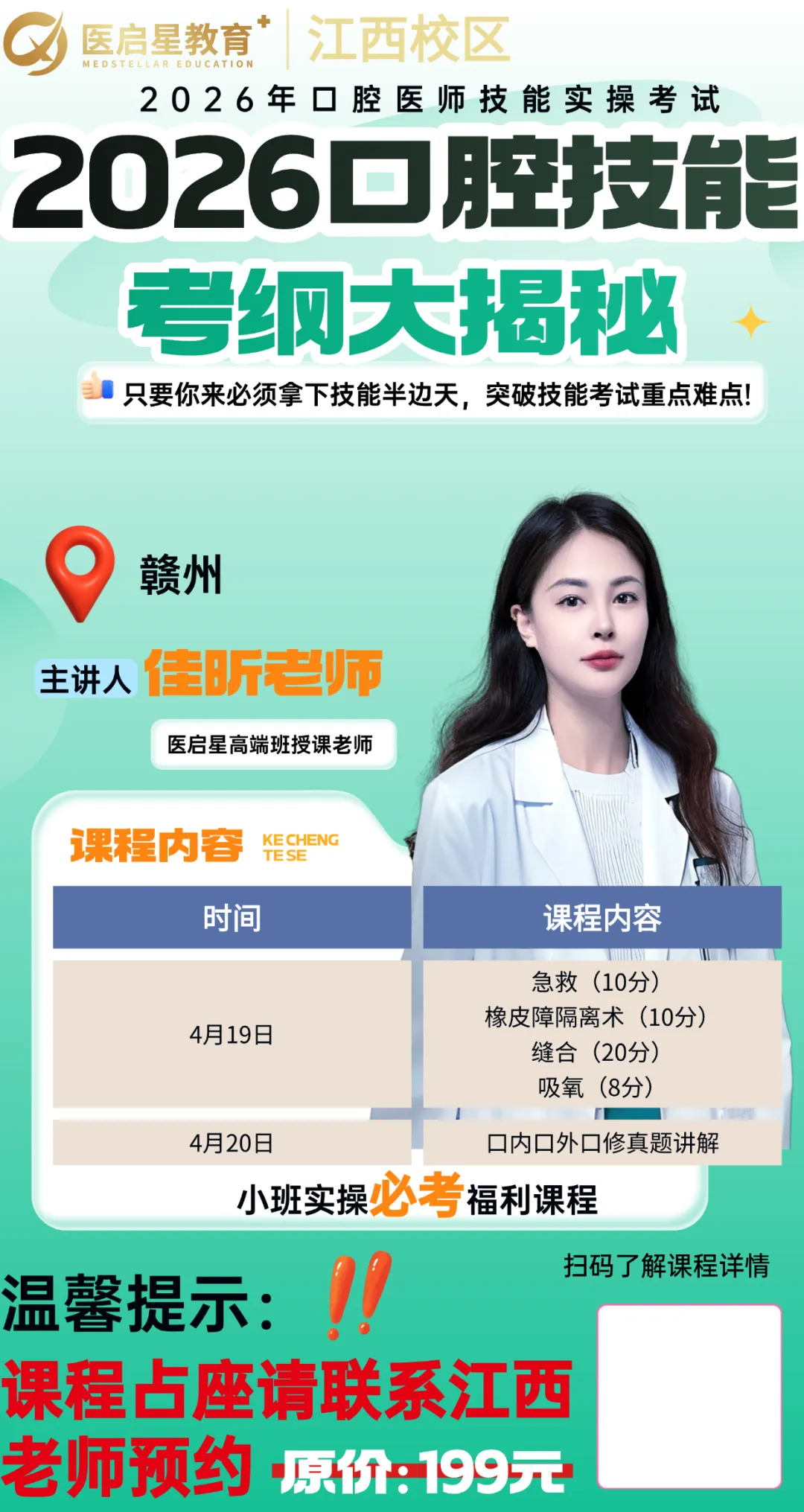 别怕,高班端佳昕老来师南昌赣和州!手手把教你急救/缝合/橡皮障,把能技考的半壁山江都给你操实安排明白!