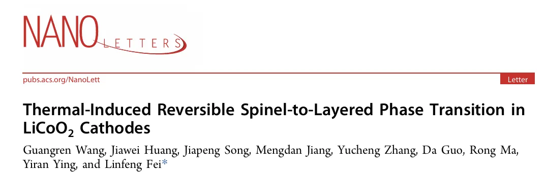 近日,南昌大学的费林峰教授团队联合西北工业大学应亦然教授等,在国际知名期刊Nano Letters上发表了题为“Thermal-Induced Reversible Spinel-to-Layered Phase Transition in LiCoO2 Cathodes”的研究论文。该工作以D-LCO为研究对象,证实了~300 ℃的温和温度下即可实现SP-LP可逆相变与电化学活性修复。研究团队通过多尺度原位/非原位表征技术,首次在原子尺度实时追踪了SP-LP相变的动态过程,揭示了其“成核-振荡-聚集”的相变机制,阐明了相变“由表及里”的各向异性生长规律,为层状氧化物正极的先进合成工艺与退役材料高效再生策略奠定了坚实的科学基础。