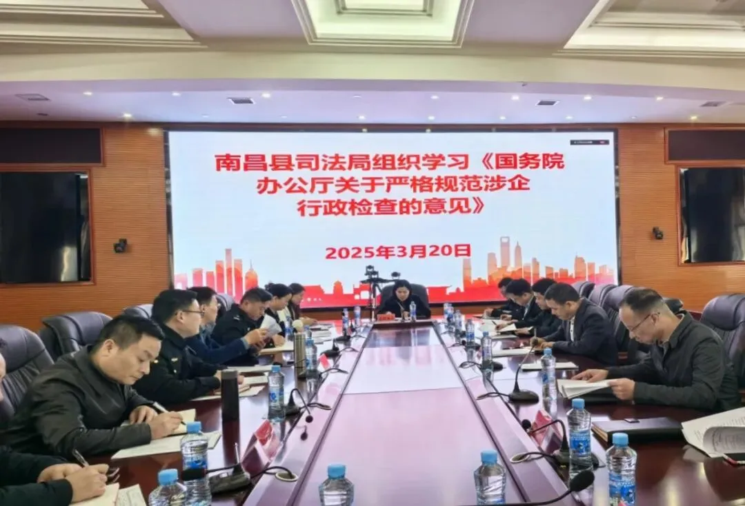 为进一步规范涉企行政检查,切实减轻企业负担,3月20日,南昌县司法局组织学习《国务院办公厅关于严格规范涉企行政检查的意见》的专题学习活动,县应急管理局、县公安局、县市场监管局、县交通运输局、县消防救援局等县直单位分管领导及业务人员参加。