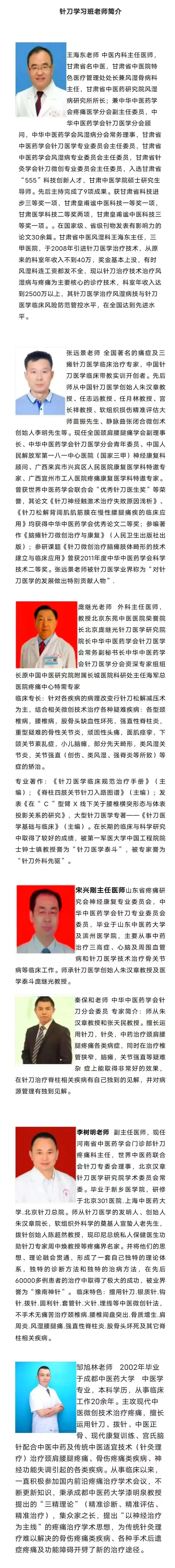 北京王九针刀医学研究院特聘教授 针刀医学临床实训专家