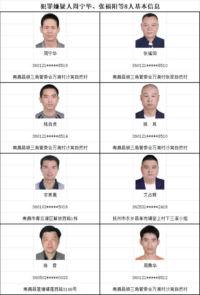 南昌县公安局近日成功打掉一个长期盘踞在银三角辖区小区内的犯罪团伙,抓获周宁华、张福阳等团伙成员8人。