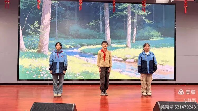 舞台之上,少年们以声为笔,以情为墨,把文字里的家国情怀、理想信念与人间温暖,化作一句句动人的朗诵。每一次停顿都饱含心意,每一段朗读都尽显真诚,在悠扬的背景音乐衬托下,让经典文字焕发出新的光彩。