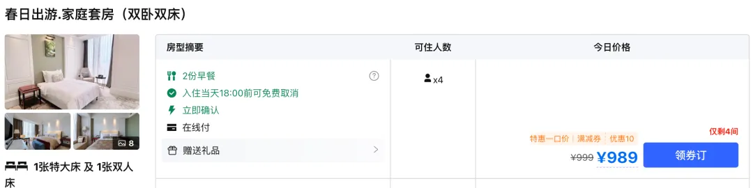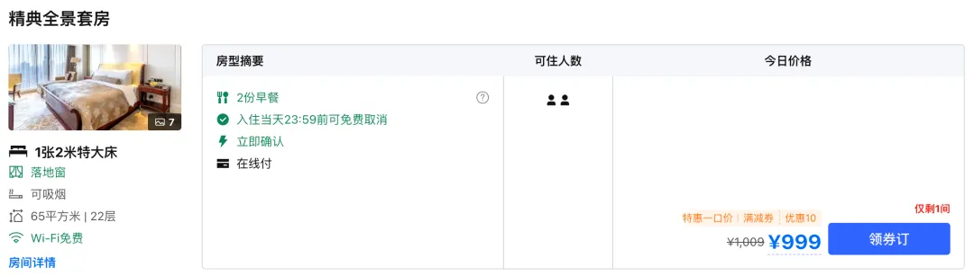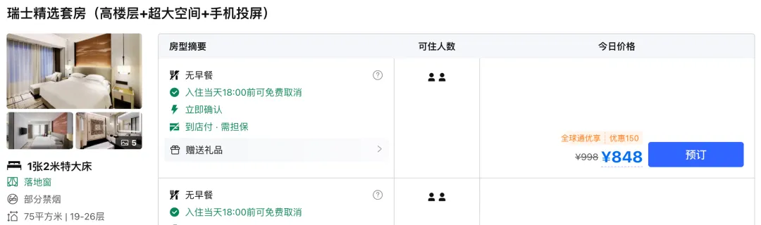 同样价位,住别的知名连锁只能住到基础房,现在可以在雅高旗下瑞士酒店住75㎡大套房,而且五一也就3晚加价。