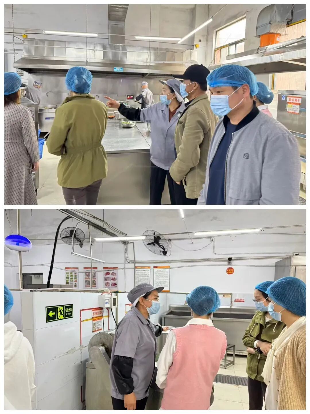膳食家委会代表一行在管理人员陪同下,穿戴好卫生防护用具,有序进入操作间,对食材储存、加工流程、餐具消毒等环节进行了全程参观。