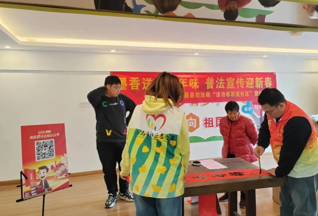 1月17日下午,南昌县司法局“法治春联进社区”活动走进莲塘街道王家社区,将新春祝福与法治精神送到居民身边,为即将到来的春节增添了浓厚的喜庆氛围和法治气息。