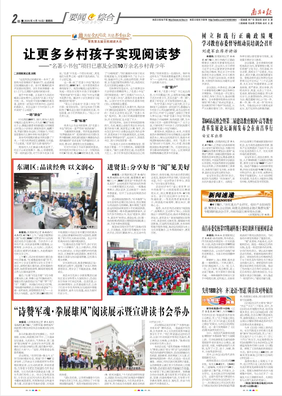南昌市百花洲小学教育集团北湖校区语文学科带头人饶岚表示,活动旨在引导孩子们亲近经典、品读名著,以诗词映照现实、以名著连接生活,让孩子们在中华优秀传统文化浸润中厚植家国情怀、涵养文化底蕴,成长为新时代好少年。