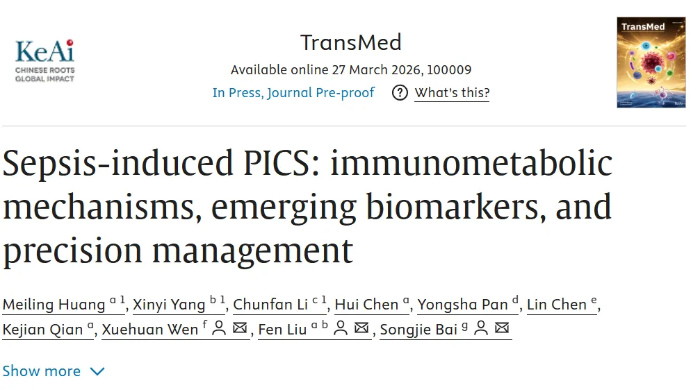 Huang M, Yang X, Li C, Chen H, Pan Y, Chen L, et al. Sepsis-induced PICS: immunometabolic mechanisms, emerging biomarkers, and precision management. TransMed. 2026:100009. doi: https://doi.org/10.1016/j.tmed.2026.100009.
