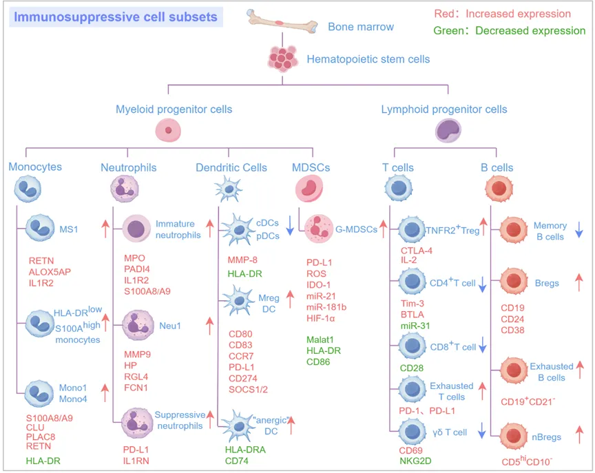 代表图2. PICS中免疫抑制的细胞全景图