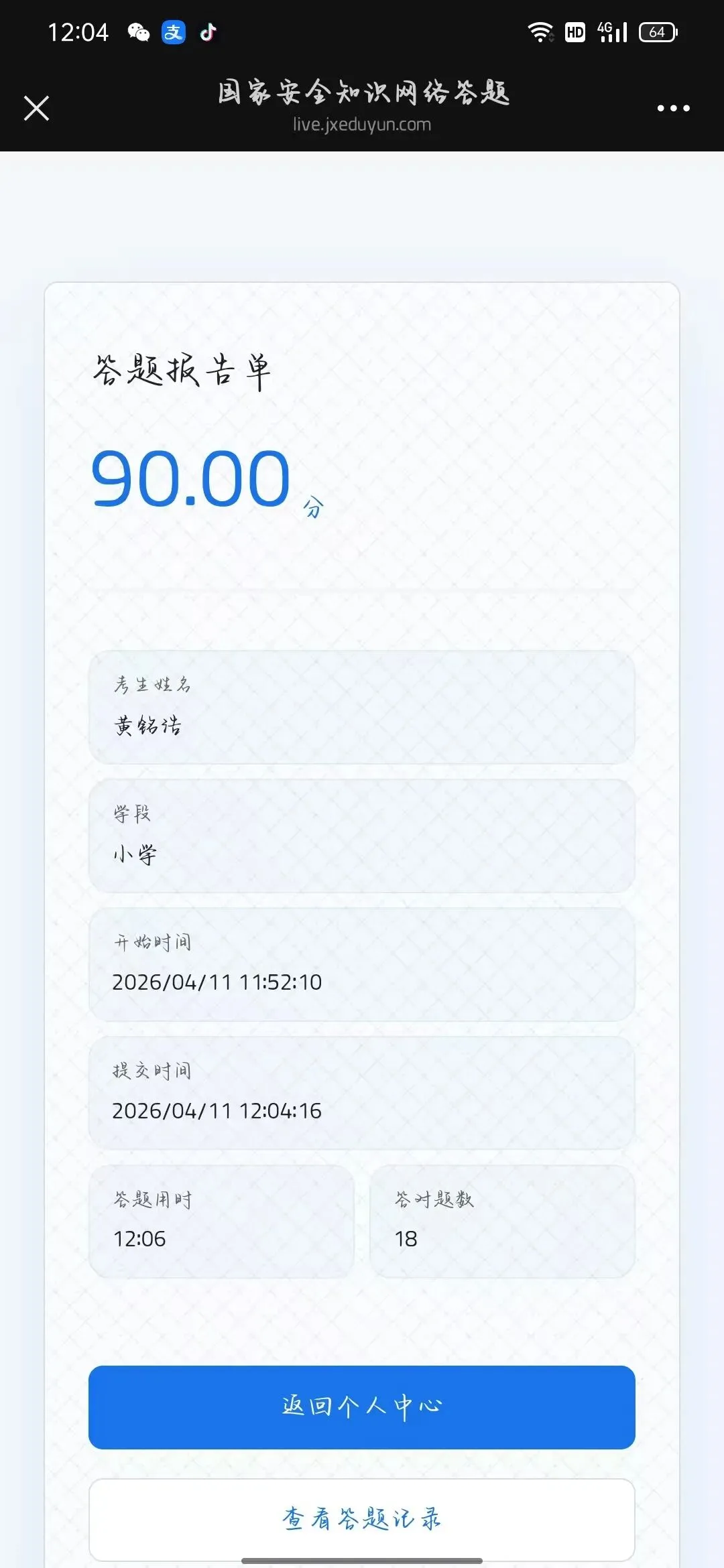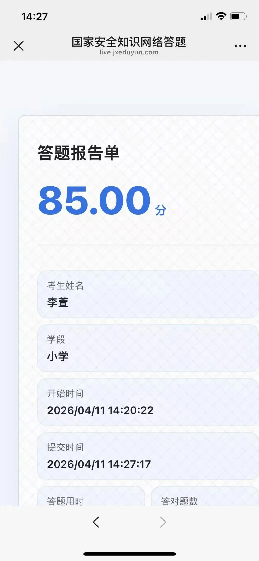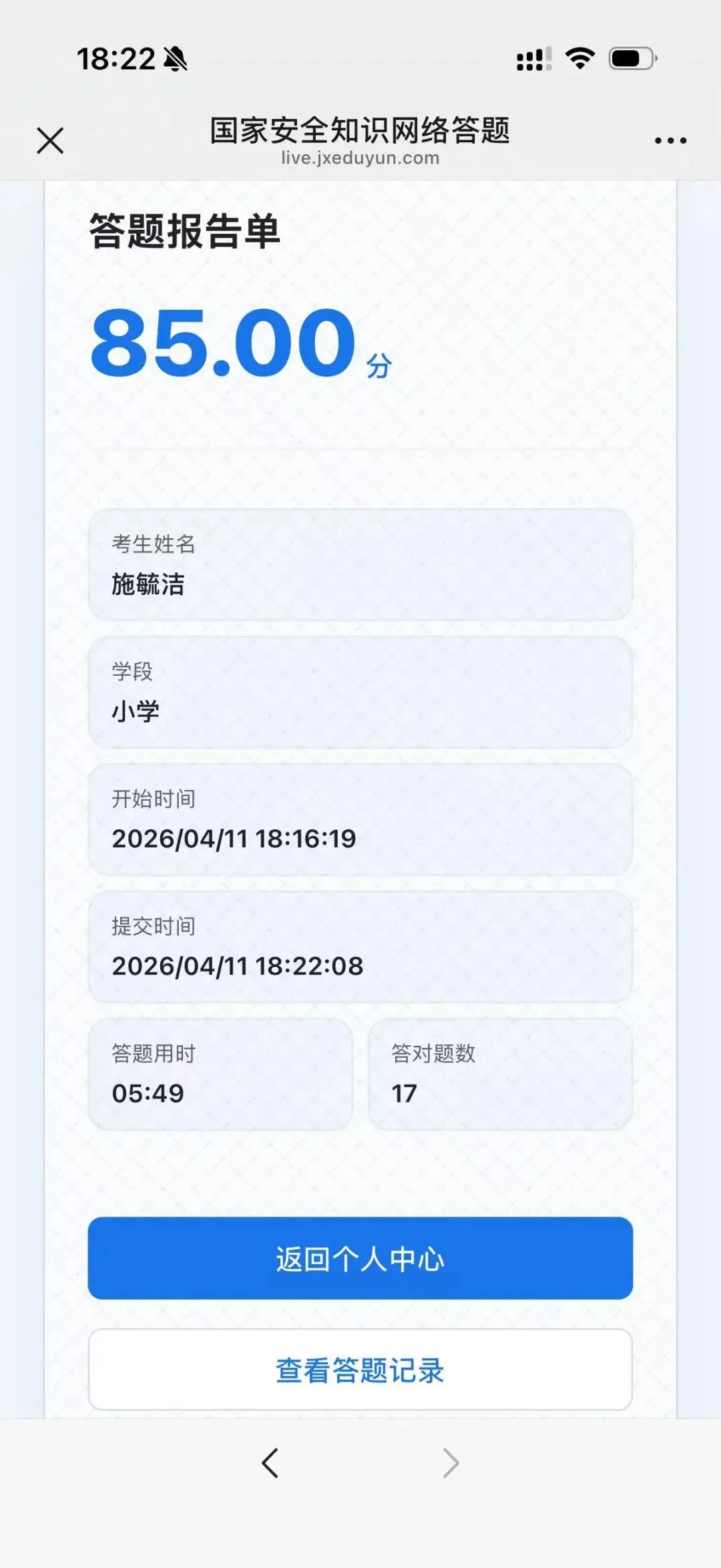 学校动员了高年级的学生参与国家安全知识网络答题活动。在答题的过程中,学生深刻的体会到国家安全的重要性。