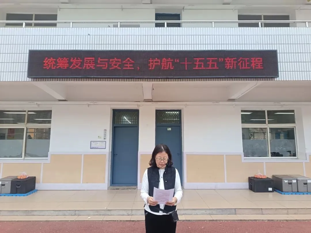 在晨会中,教师代表以“统筹发展和安全,护航十五五新征程”为主题进行宣讲。同时,学校大屏幕近期也以“统筹发展和安全,护航十五五新征程”为主题进行全面宣传。