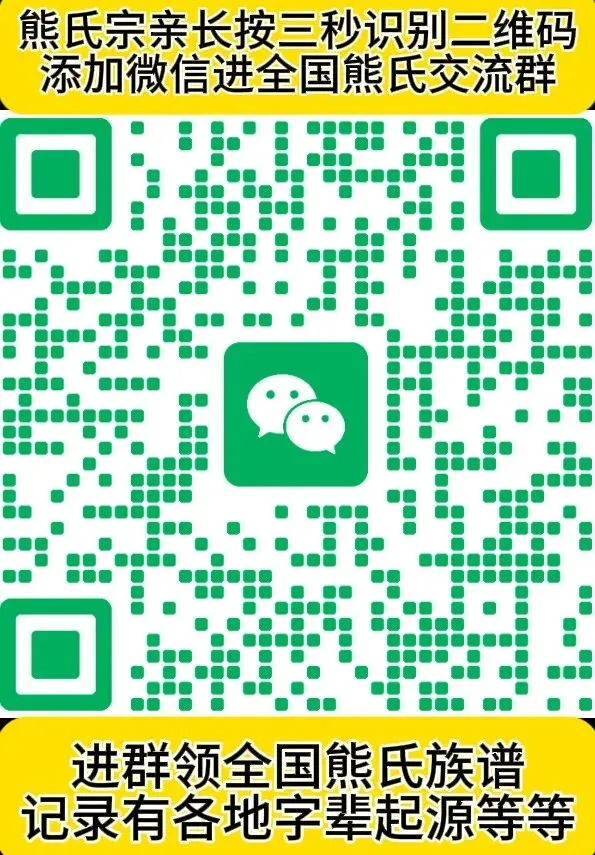 扫描下方二维码:进全国熊氏家族群,免费领熊氏族谱