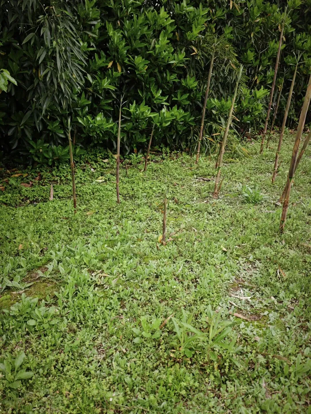 顺着道路往园区深处走,景致愈发治愈。一条清澈沟渠穿园而过,两岸杨柳依依,柔枝轻垂,倒影在水面上随波轻晃,满是江南田园的温婉意境。路边随处可见鲜嫩的艾叶,竹林边缘还藏着破土而出的春笋,随手就能触碰春日野趣,唯一要注意的是园内小飞虫较多,亲近自然时记得做好防护。