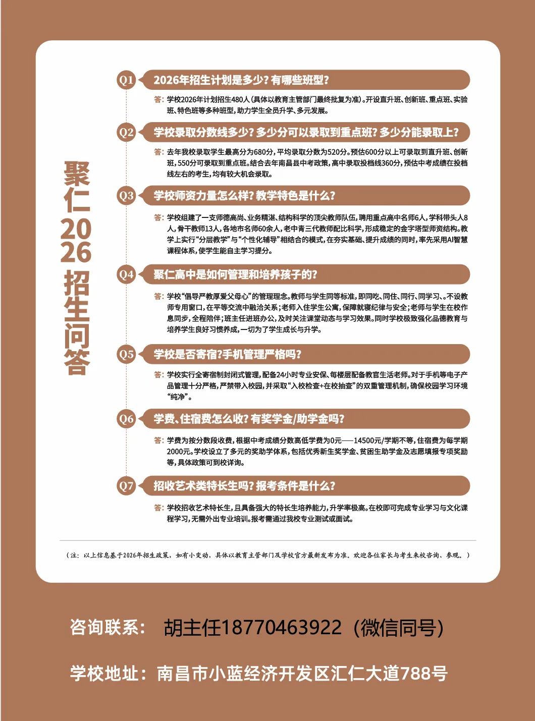 南昌聚仁高级中学招生热线:胡主任18770463922