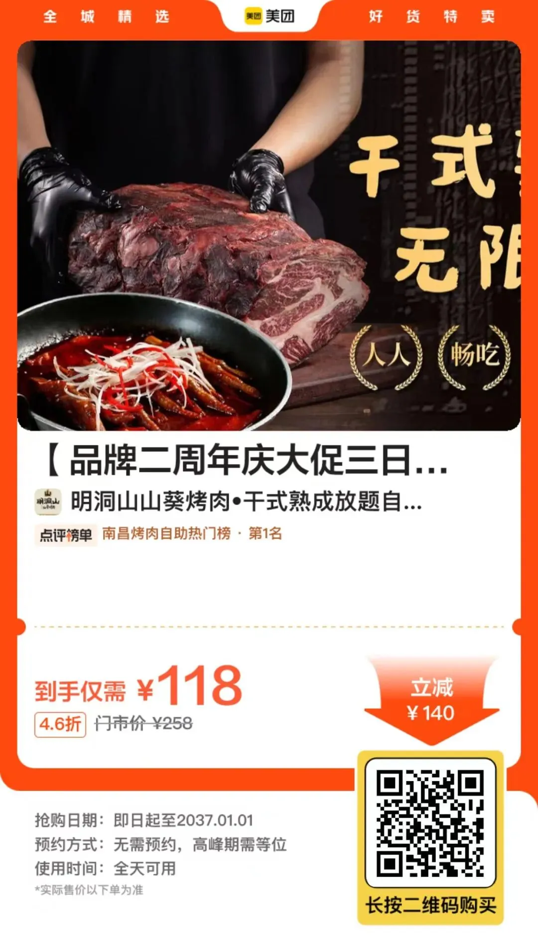 南昌吃货注意!「明洞山山葵烤肉」干式熟成放题自助118!热门榜认证,7天热销500+