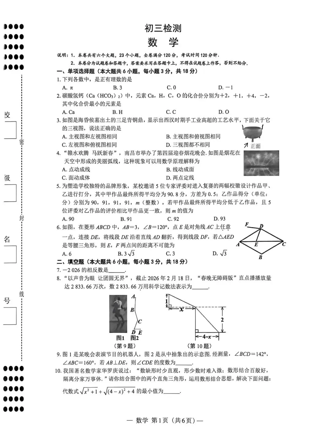 这次一模的第9题(春晚机器人)、第11题(快递员收益)、第12题(手机套餐),全是生活场景!以后中考会更爱把数学塞进“真实问题”里——比如“社区垃圾分类投放点布局”“共享单车投放量预测”,甚至结合江西本土文化(如景德镇陶瓷产量、滕王阁游客量)。
