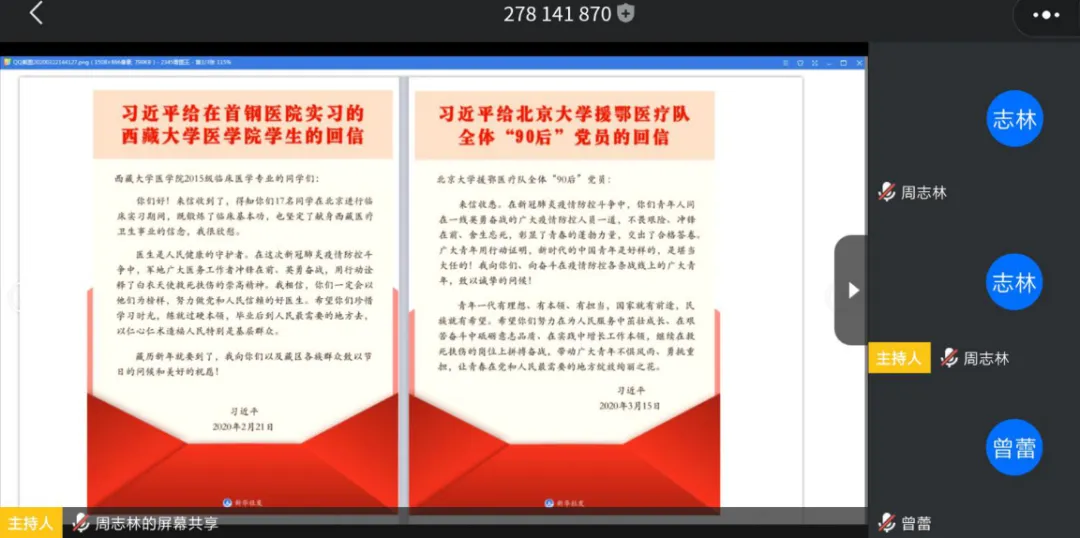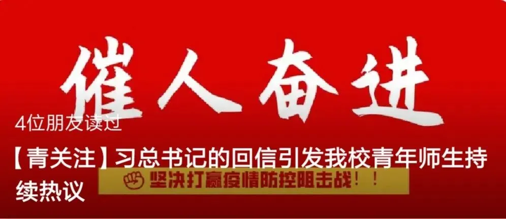 “两封回信寄托了党中央和习总书记对广大青年的殷切希望,作为新时代高校辅导员,我们要不断增长业务知识、苦练扎实本领,秉承‘为党育人、为国育才’的光荣使命,‘辅’学生成长、‘导’学生成才、‘员’学生梦想。”“习总书记的回信意蕴丰厚、温暖人心,字里行间处处流露出对青年一代的关心和肯定,读完令人备受鼓舞。作为一名学生党支部书记、辅导员,深感重任在肩,我将时刻牢记自己的初心和使命,坚持不懈教育引导青年学生珍惜学习时光、练就过硬本领,用青春之力书写华彩篇章。”南昌工程学院校院两级团学组织和广大青年学子以线上学习的方式认真学习回信精神,大家纷纷表示,一定要牢记习近平总书记谆谆嘱托,以习总书记的勉励为动力,努力成为有理想、有本领、有担当的“90后”新时代青年。学生党员、湖北籍抗疫志愿者、经济贸易学院 2017级审计学专业学生 赵思绮“读完习近平总书记的回信,我深深地感受到了援鄂‘90后’为祖国出一份力的赤诚之心。作为一名土生土长的‘90后’湖北女孩,我很荣幸能作为志愿者参与到抗疫中,我深知这是一名青年应该承担的责任和义务。今后我定将不辜负全国人民的期望,在为人民服务中茁壮成长、在艰苦奋斗中砥砺意志品质、在实践中增长工作本领,勇敢担起时代赋予的重任。”学生党员、大学生骨干培训班成员、国际教育学院2017级电气工程及其自动化专业学生 曾心志“在这次抗疫中,全国有1.2万多名‘90后’医护人员驰援湖北,身为同龄人,我为他们感到自豪。作为一名学生党员,不但要自己投身于为人民服务中,还要带动广大青年一起行动起来,把青春的热血洒在党和人民最需要的地方。”发展对象、社区防疫志愿者、“中国大学生自强之星”荣誉称号获得者、机械与电气工程学院2017级电气工程及其自动化专业学生 吴涛“习近平总书记的回信语重心长、饱含深情,让我深切感受到了党和国家对青年一代的期望与勉励。‘90后’的我们在这场抗疫中成为了主力军,身为一名社区防疫志愿者,我深感自豪,今后我一定会牢记习近平总书记嘱托,不断磨砺自我,让青春奉献之光闪耀在每个角落。”入党积极分子、工商管理学院2018级市场营销专业学生 杨春霞“习近平总书记的回信温暖亲切、催人奋进,读完后我备受感动、深受鼓舞。作为一名大学生,我将带着国家、社会、人民的期盼,严格要求自己,从点滴小事做起,向前辈们学习,做有责任有担当的新时代青年。”南昌工程学院学子勇担使命、同心抗疫,为爱献唱《生命的期许》来源 | 南昌工程学院