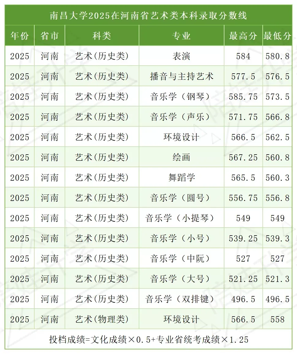 录取数据 | 211院校 | 南昌/北京体育大学2025河南省艺术类本科录取分数线