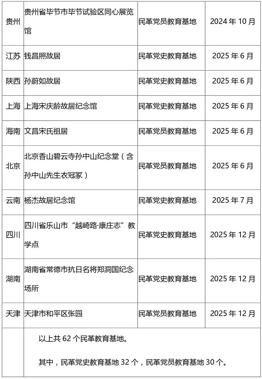 民革教育基地(民革党史教育基地和党员教育基地)是民革“四位一体”建设的重要抓手之一。自2011年以来,截至2025年12月,先后在全国20多个省市命名了32个党史教育基地、30个党员教育基地。我们将陆续刊登教育基地有关信息,为民革各级组织和广大党员认识、了解、用好教育基地,服务自身建设提供基础服务。