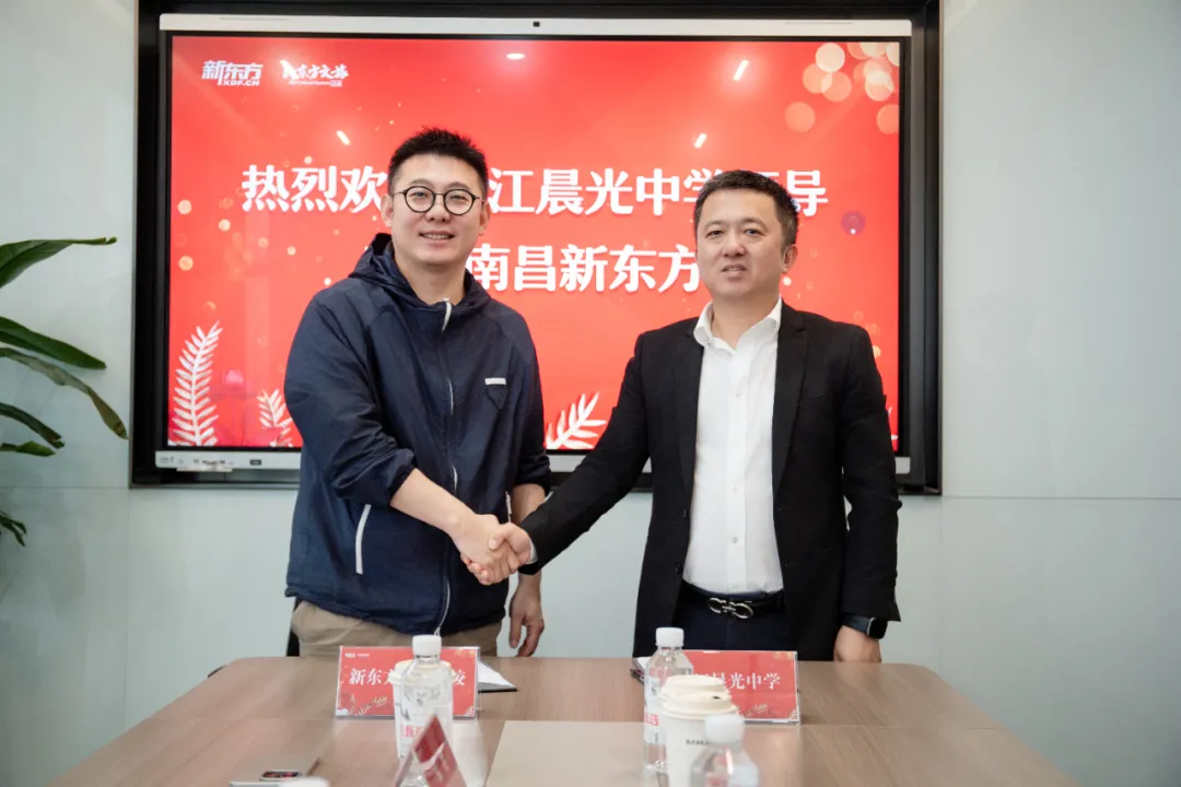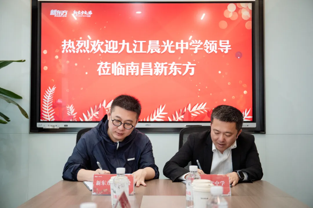 4月16日上午,九江晨光中学周沐校长及教学管理团队一行莅临南昌新东方总部,双方就强基计划背景下的合作举行专题座谈,并在当天正式签署合作协议。